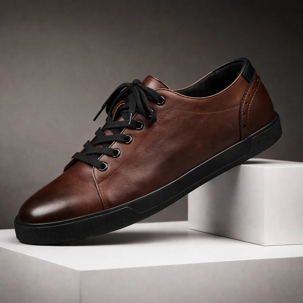 Crafted from genuine full-grain leather, the Lombardi Lows capture the essence of Italian street-luxury design - minimal, confident, and timeless.  Finished in deep espresso brown with black contrast soles and smooth tonal stitching, they pair everyday comfort with unmistakable sophistication.