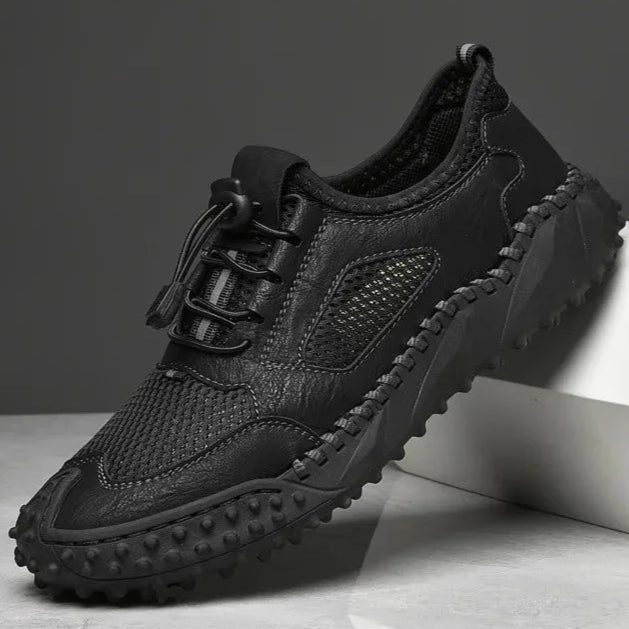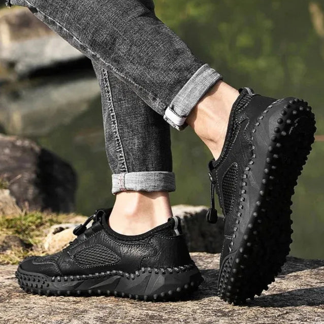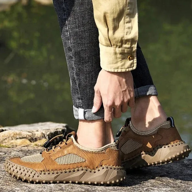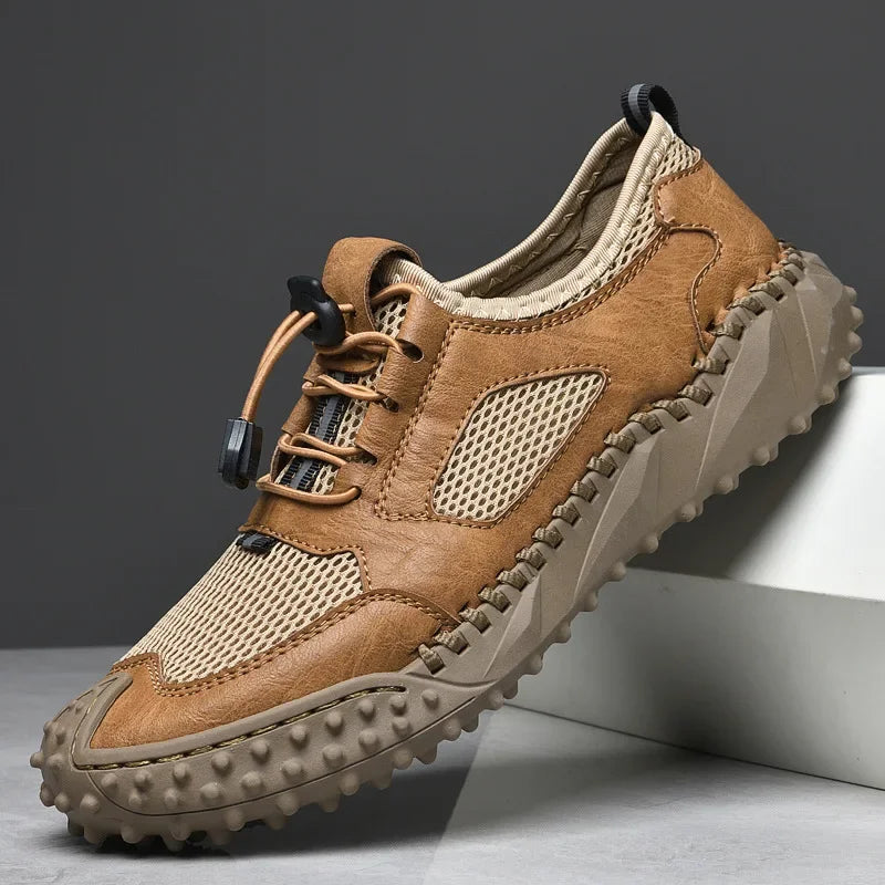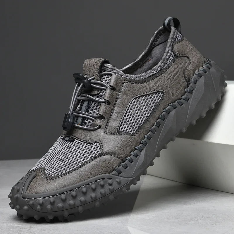Our StoneRidge Trekkers blend durable all-terrain performance with featherlight comfort.  Featuring a reinforced mesh upper, rugged trail-grip outsole, and cushioned Cloud9 insole, they're built to handle the unbeaten path.