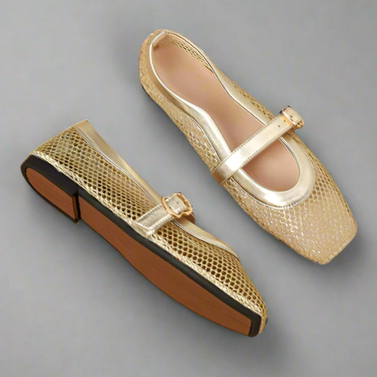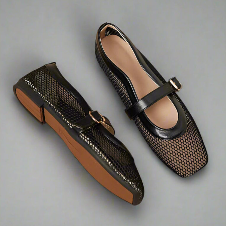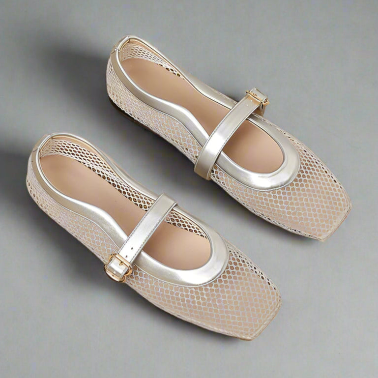 Designed with a modern square toe and delicate buckle strap, these chic flats fuse minimalist flair with lasting all-day comfort.  A breathable mesh upper and impact-absorbing footbed deliver comfort and beauty with every step you take.