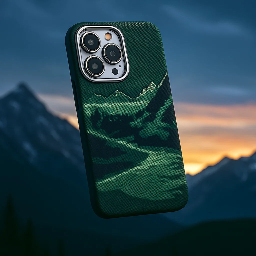 Designed with a textured non-slip grip and alloy bumper to shield your camera, our Summit Ridge case combines a striking alpine scenery with every day durability.  MagSafe-ready to keep your device charged and ready for any adventure.