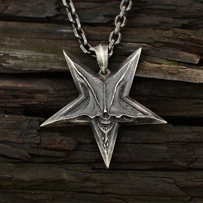 Forged in the fire and built for the ruthless, our SkullStar Chain hits like armor.  Cast in industrial alloy steel with a scorched silver finish, it features a jagged skeletal star suspended on a thick, no-compromise chain - made for those who don't flinch.